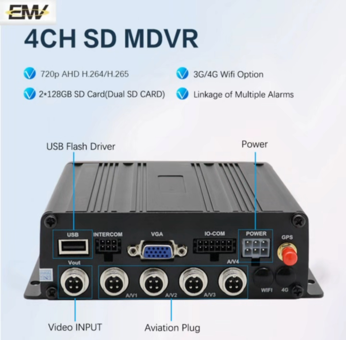 Products Description 4CH 720P AHD HDD SSD 4G GPS Bus Truck MDVR ● Embedded compact design, low power, high efficient H.264 compress, high reliability. ● 4CH 720P HD recording, supports 4TB hard disk & 152GB SD card. ● […]